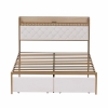 Double Bed Frame with Storage, Adjustable Headboard, Easy Assembly, 198.5L x 143W x 107.5H cm, Beige