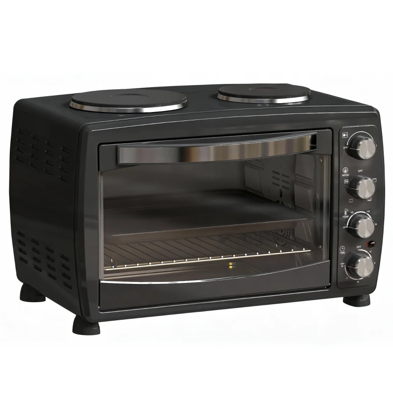 HOMCOM 36L Small Oven with 2 Hot Plates, Countertop Toaster Oven, Grill, Roast, Bake, Boil, with Timer, Adjustable Temperature, Electric Oven with Baking Tray, Grill Rack, Crumb Tray, 2600W, Black
