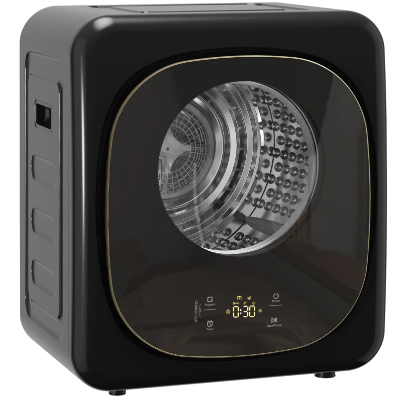 HOMCOM 4kg Vented Tumble Dryer with 5 Drying Mode, 800W Compact Freestanding Front Tumble Dryer Black