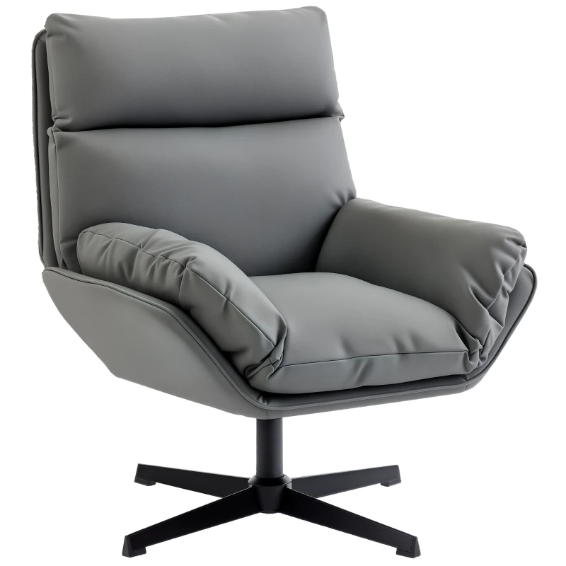 HOMCOM Accent Chair with 360 Swivel Armchair for Living Room with Padded Cushion Dark Grey