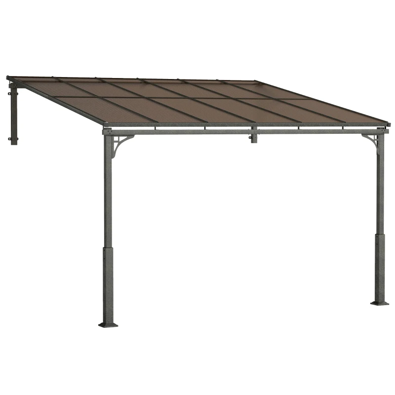 Outsunny Wall-Mounted Metal Pergola Hardtop Gazebo Brown
