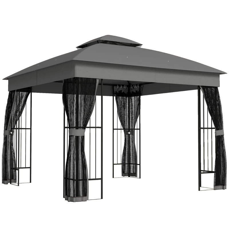 Outsunny 3 x 3 m Outdoor Garden Gazebo with Post Shelves, UPF50+ Double Roof Patio Permanent Pavilion, Grey