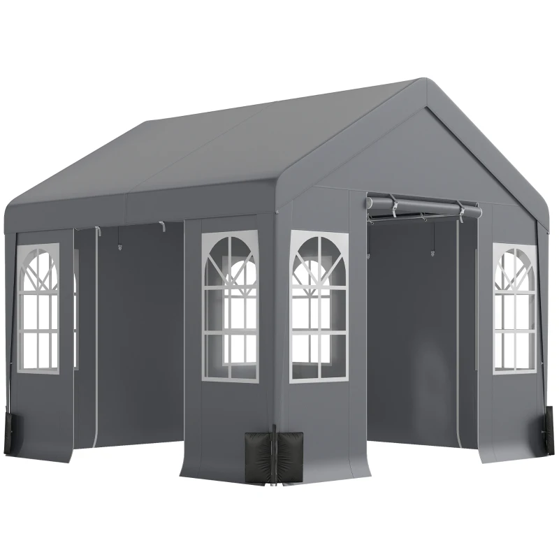 Outsunny 3 x 3 m Party Tent, Outdoor Canopy Tent Shelter with Removable Sidewalls, 4 Zipped Doors, for Parties, Wedding, Grey