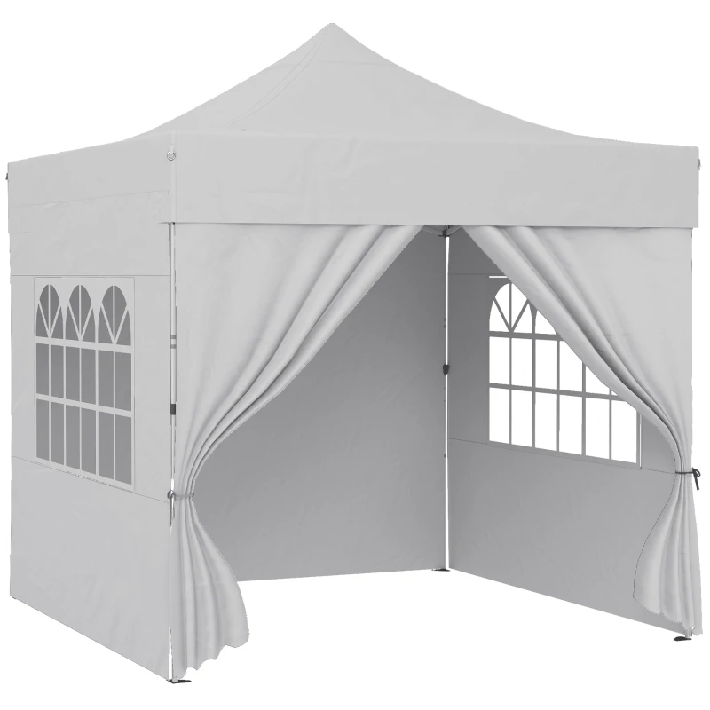 Outsunny 3 x 3 m Pop Up Gazebo with Sidewalls, UPF50+ Heavy Duty Garden Party Tent Marquee with Wheeled Carry Bag, Silver Grey