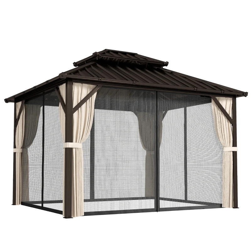 Outsunny 3x3 m Hardtop Gazebo Canopy with UPF50+ Double Galvanised Steel Roof, Aluminium Garden Gazebo Permanent Pavilion, Brown