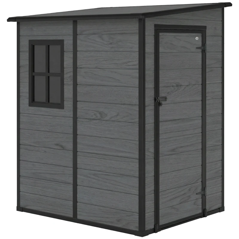 Outsunny 4'x5' Garden Storage Shed, Lean to Shed, Lockable Garden Shed with Window, Vent and Plastic Roof, Wood-Effect