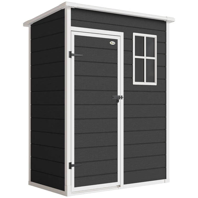 Outsunny 5' x 3' Garden Shed with Floor, Outdoor Storage Shed with Lockable Door, Window and Vent, Black