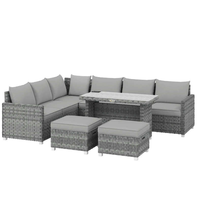 Outsunny 6 Seater Rattan Garden Furniture Set with 3 Sofas, 2 Footstools, Table, Patio Rattan Furniture Sofa Sets, Grey