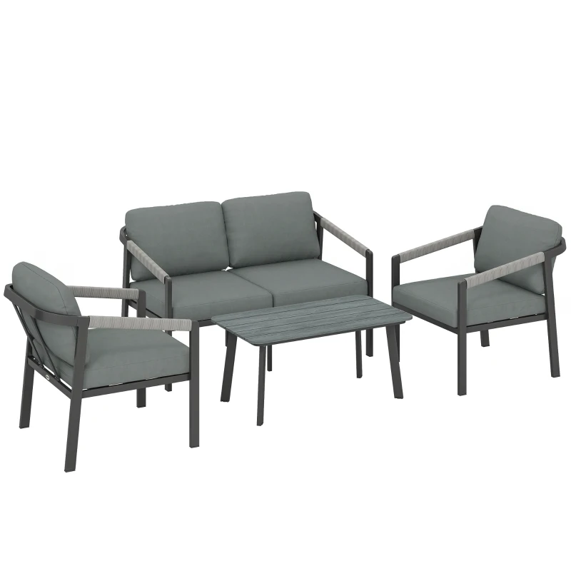 Outsunny Aluminium Garden Furniture Set, 4 Seater Outdoor Patio Furniture with Loveseat, 2 Armchairs, Slatted Table(m-4)