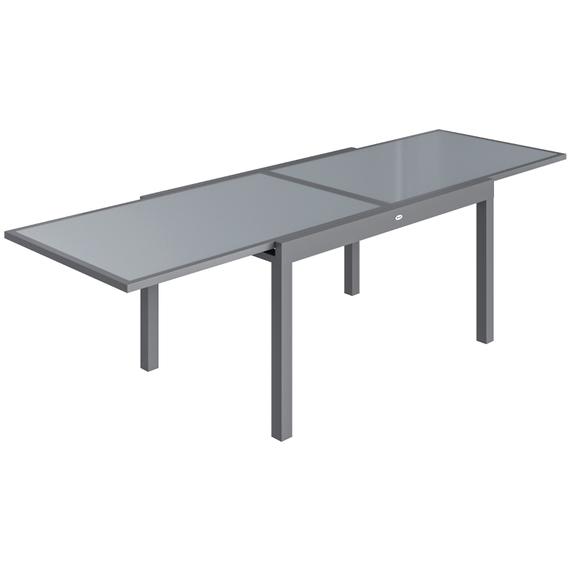 Outsunny Extending Garden Table for 6-10, Aluminium Outdoor Dining Table with Tempered Glass Top, Grey
