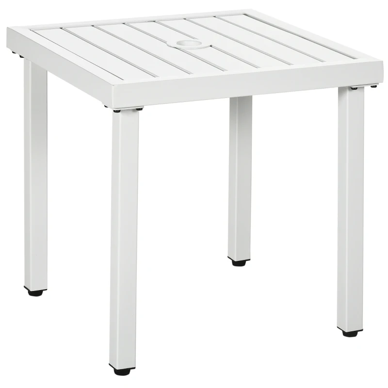 Outsunny Garden Side Table End Table Patio Coffee Table with Umbrella Hole, Steel Frame for Balcony, White(m-8)
