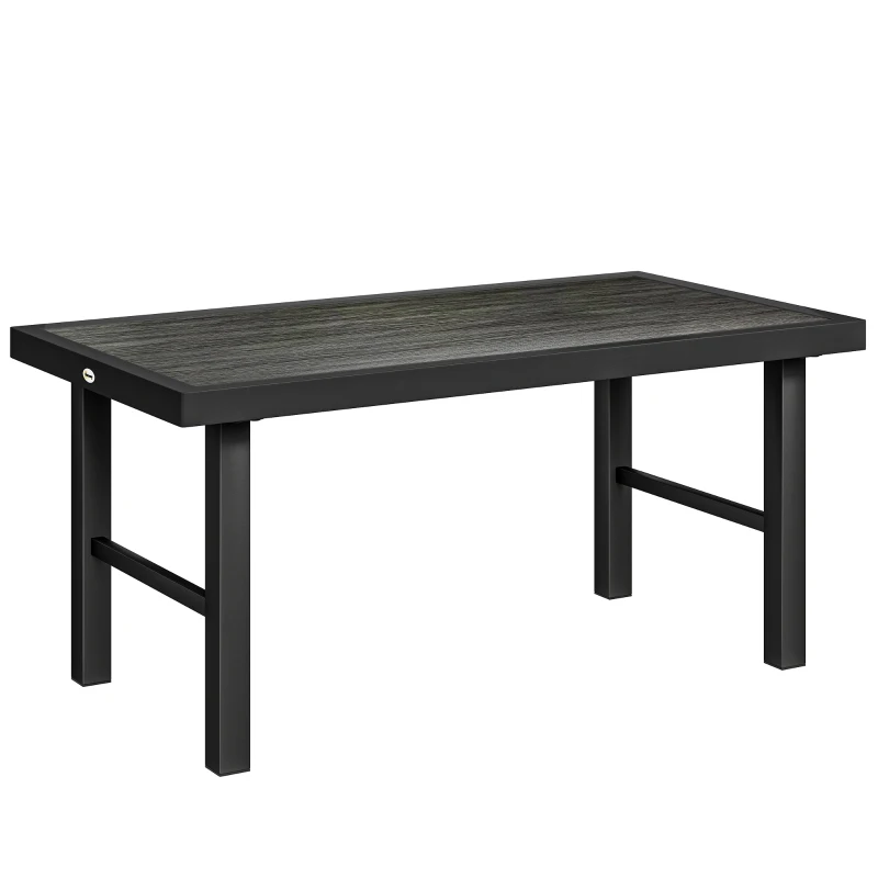 Outsunny Metal Garden Coffee Table, Outdoor Side Table with SPC Woodgrain Tabletop for Outside, 100 x 52 x 46cm, Dark Grey