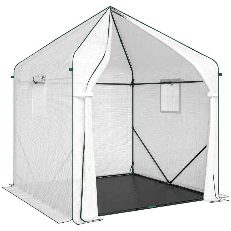 Outsunny Walk-in Greenhouse for Outdoors with Steel Frame, Large Plant House with Roll-up Door and PE Ground Cover, White(m-2)